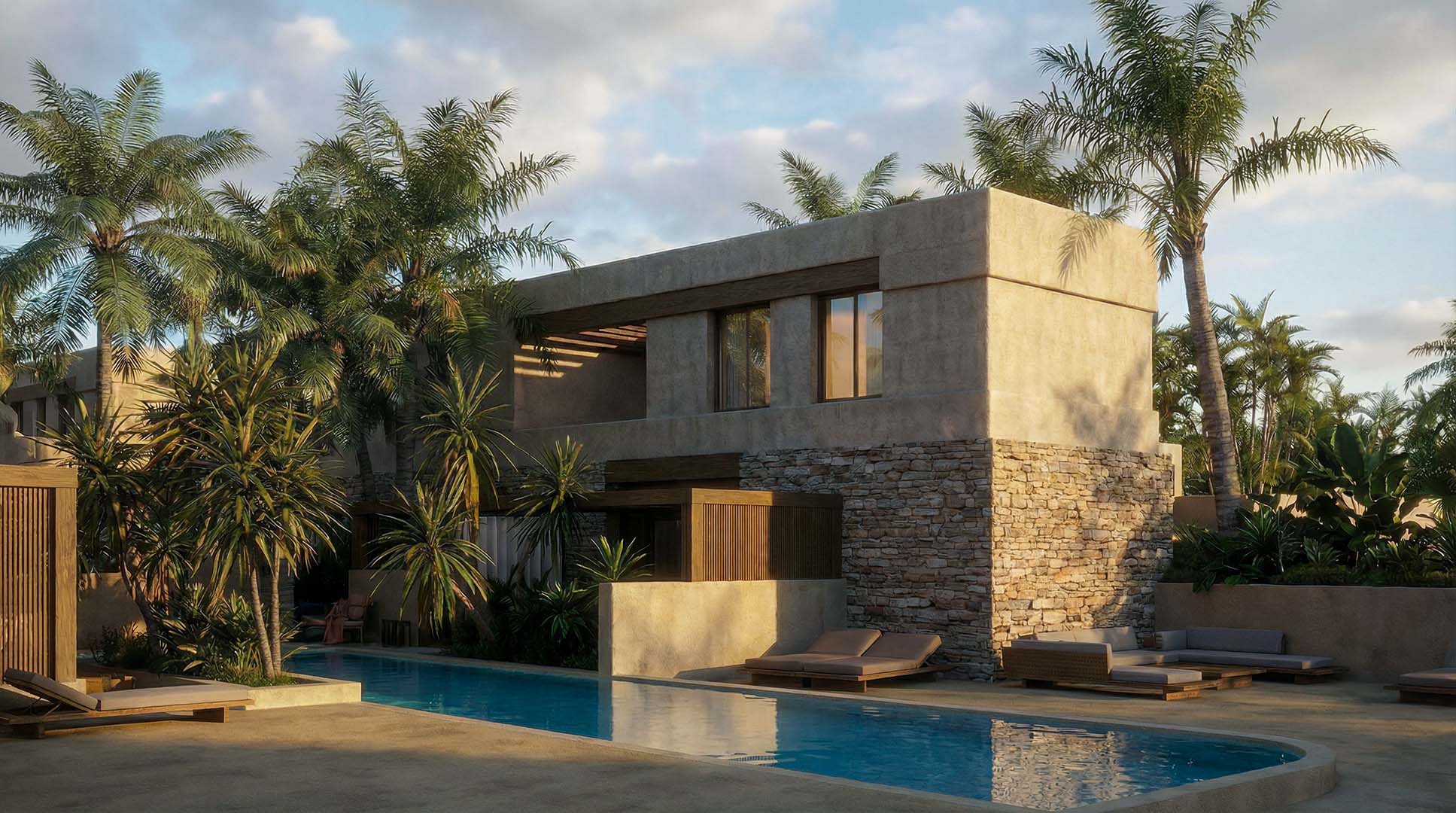 Το συγκρότημα αποτελείται από έξι ανεξάρτητα κτίρια, καθένα από τα οποία περιλαμβάνει τέσσερις υψηλών προδιαγραφών κατοικίες. Τα ισόγεια δωμάτια έχουν άμεση πρόσβαση στην πισίνα, ενώ τα ανώτερα επίπεδα διαθέτουν ιδιωτικό εξωτερικό jacuzzi, προσφέροντας διαφορετικές εμπειρίες διαμονής. Ο σχεδιασμός κάθε μονάδας εξασφαλίζει πλήρη ιδιωτικότητα και οπτική απομόνωση μεταξύ των κατοικιών.