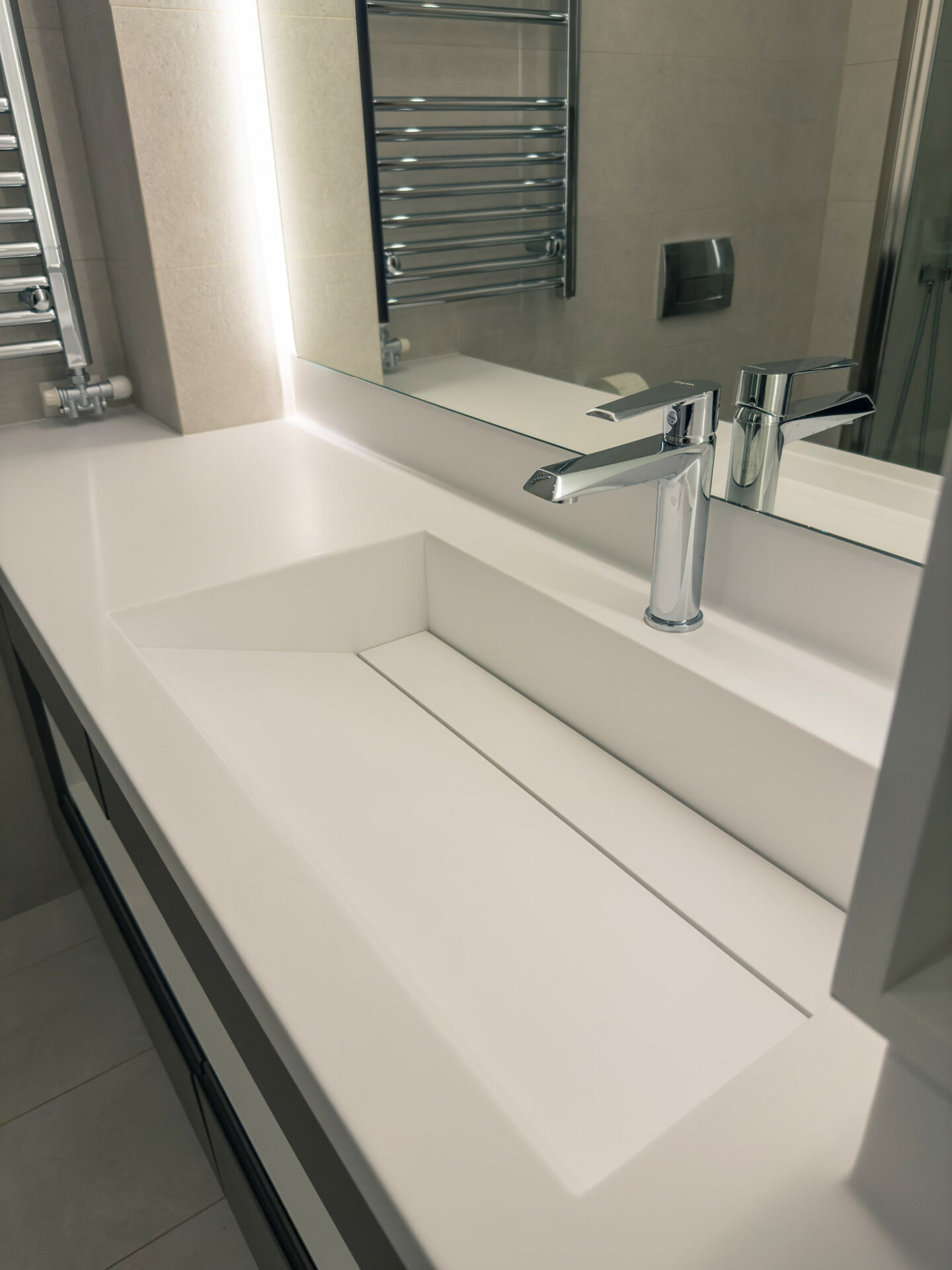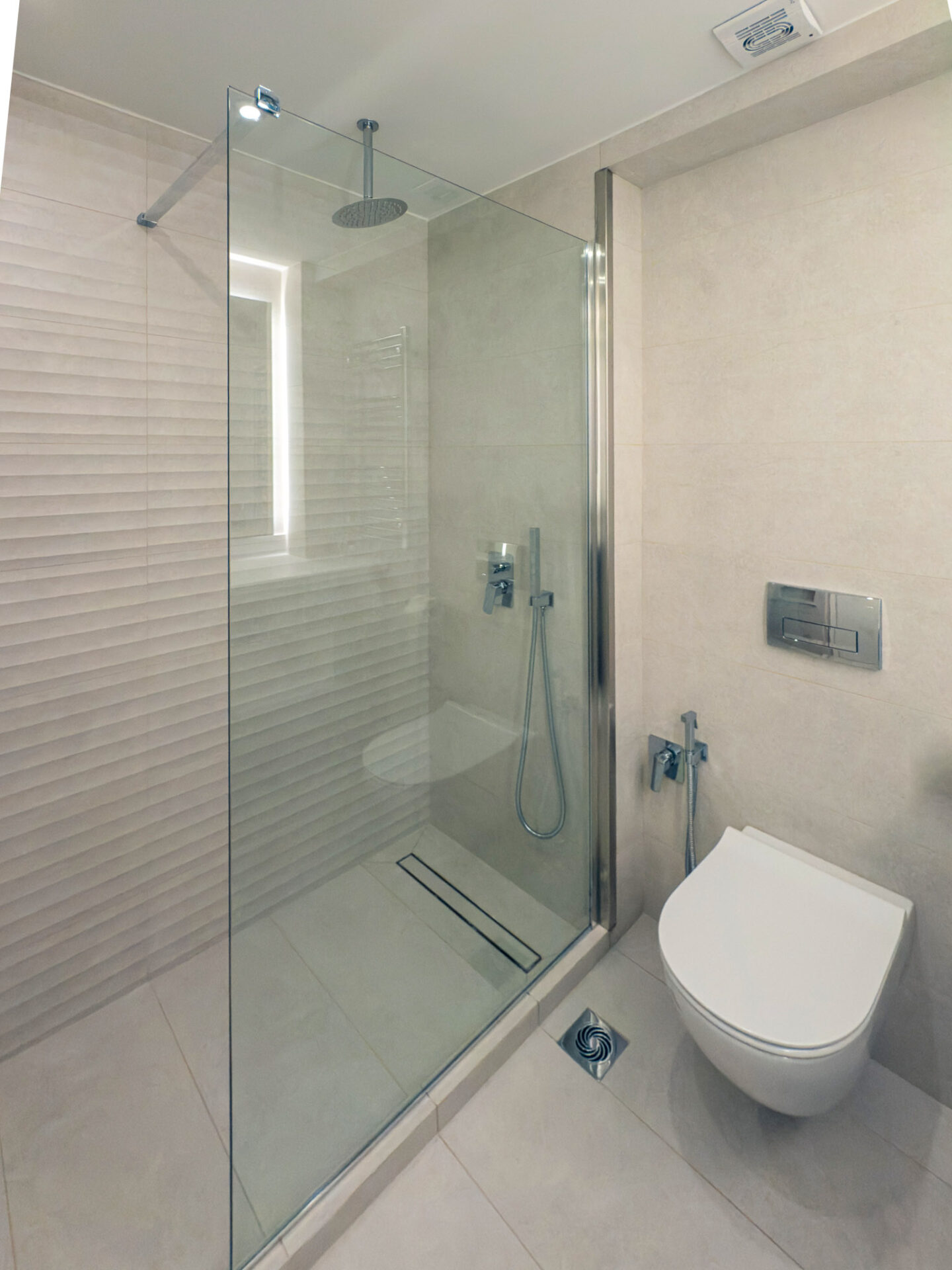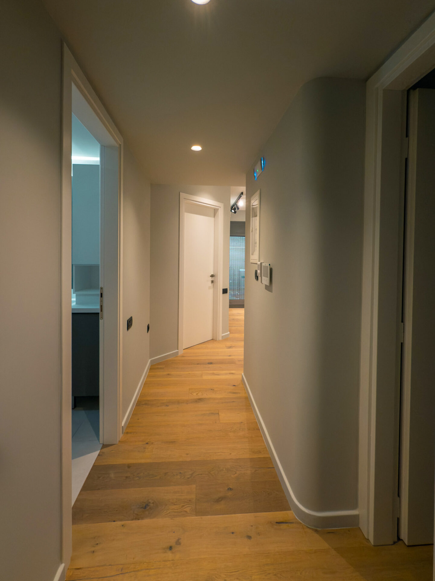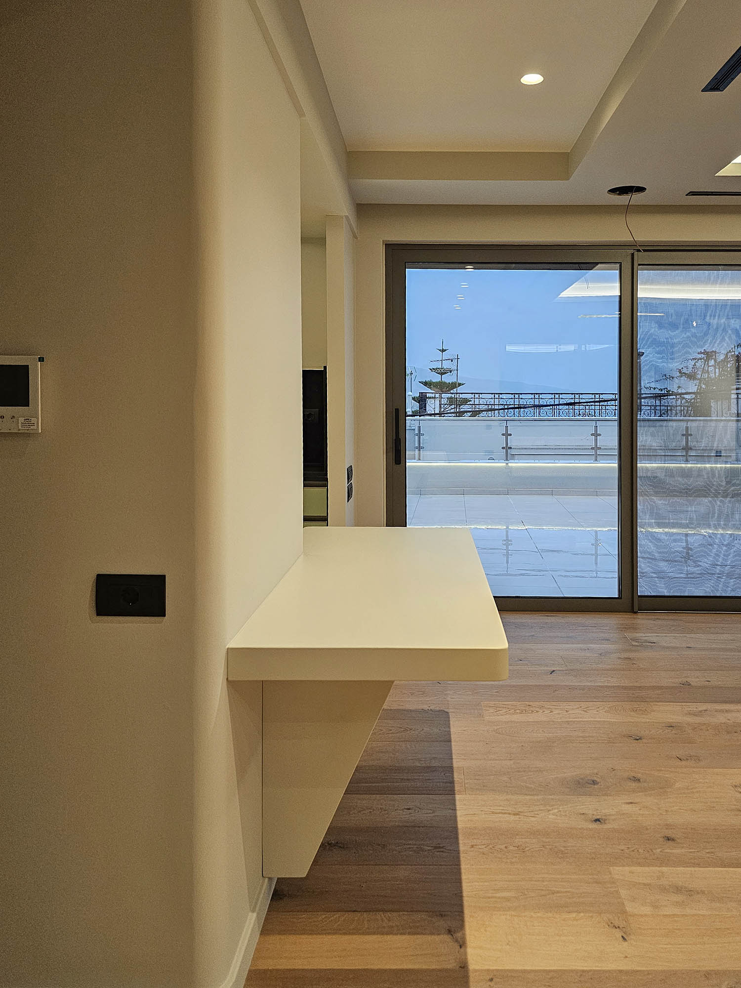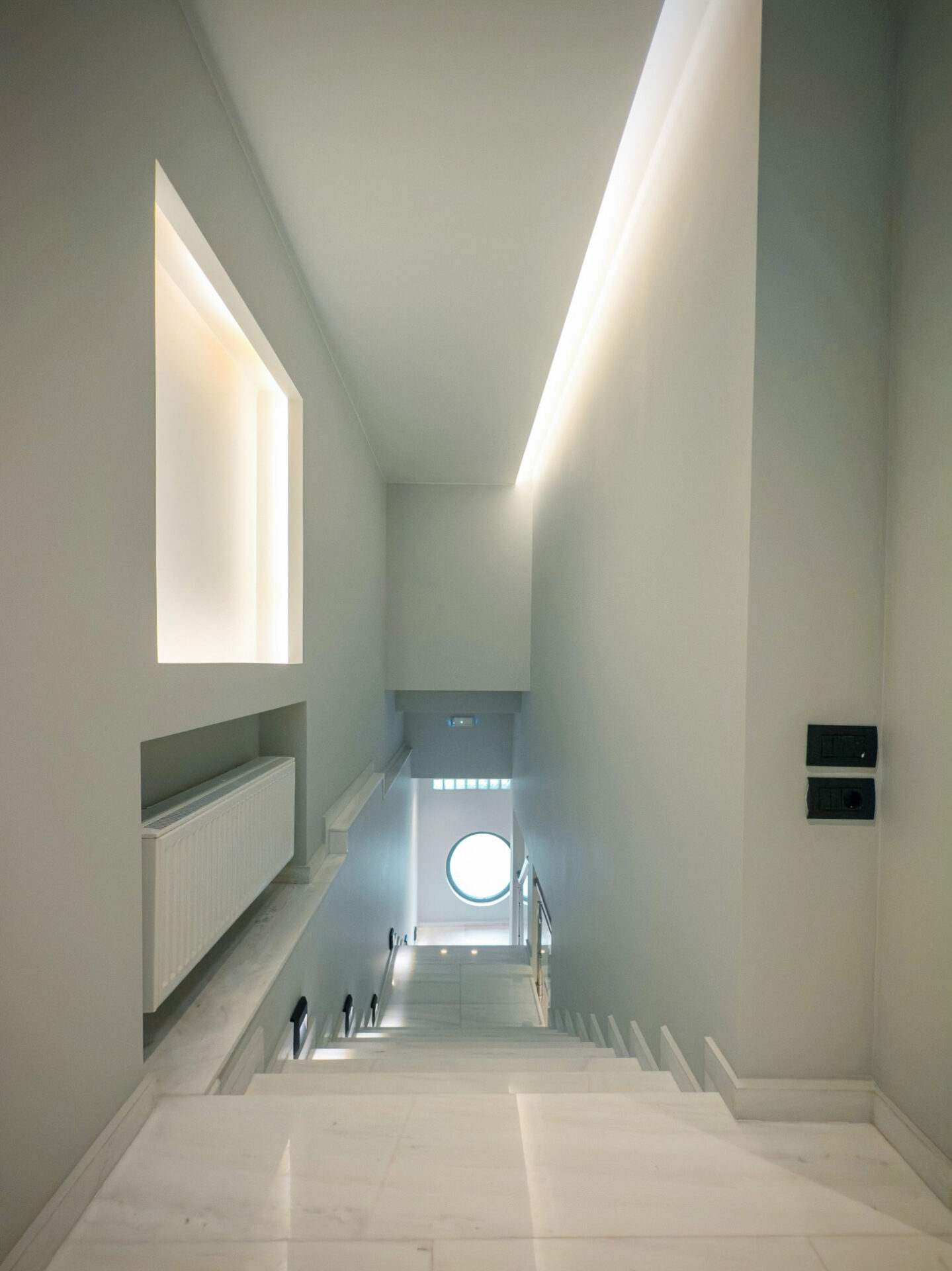 The entrance of the residence is finished with white marble cladding, conveying a sense of timeless elegance. All three levels are connected via an elevator, ensuring full accessibility. The window frames are of the latest technology, offering high energy efficiency, thermal insulation, and soundproofing.